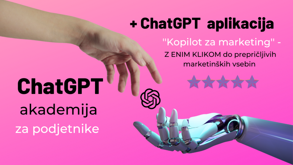 V ChatGPT akademiji za marketing se boste spoznali s trendi, ki jih prinaša AI in njenim učinkom na prihodnost dela. Seznanili se boste s ChatGPT-jem in ga znali uporabiti v marketingu.